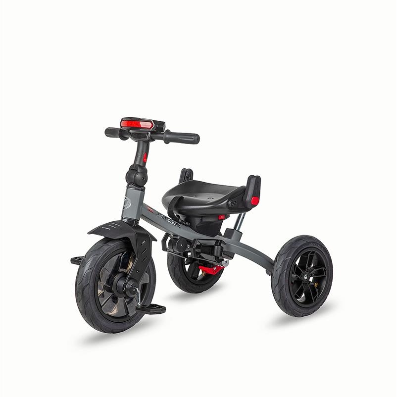 Trdni okvir in napihljiva kolesa ponujajo največjo stabilnost ne glede na teren, na katerem je tricikel potisnjen, kolesarjenje pa je enostavno zaradi ergonomsko oblikovanih pedal.